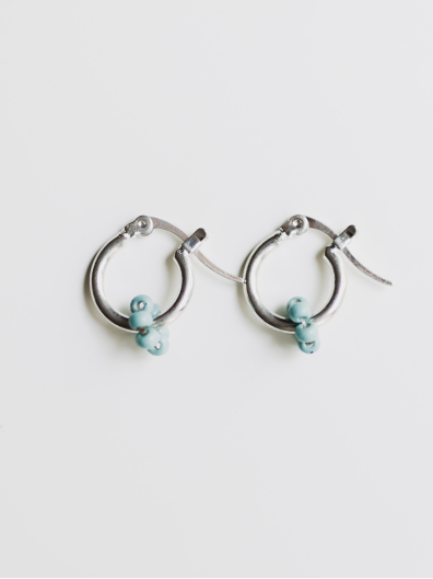 Floral Micro Hoop Earrings - Turquoise
