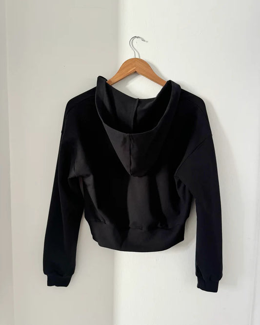 MICAELA cropped zip hoodie in Black