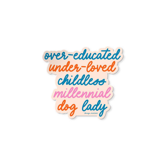Over-educated under-loved childless millennial dog lady sticker